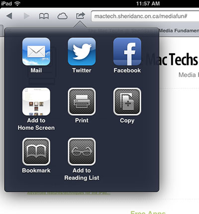 Navigate to the page you wish to print in Safari. With that page open, tap the action icon directly left of the address bar (looks like an arrow jumping out of a box). Then tap the “Copy” button.