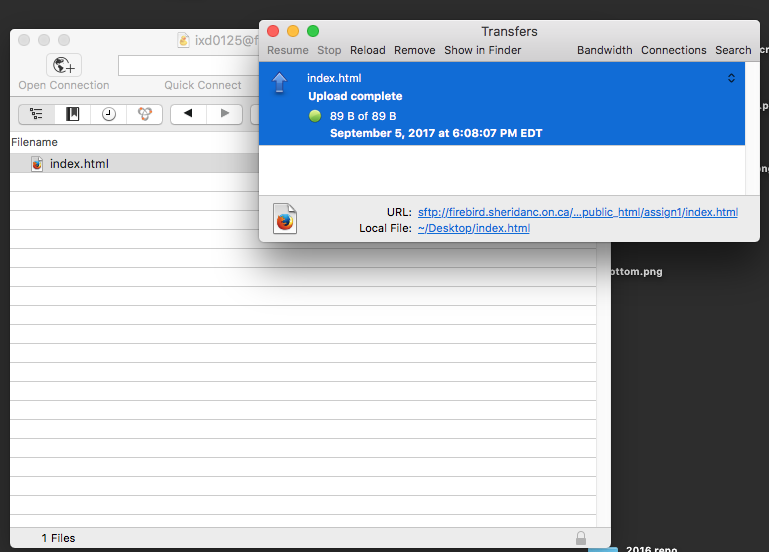 If you had created a index.html file as above, and copied it to the public_html/assign1 directory, then the owner of account ixd0125 would able to see their webpage at a URL such as so: