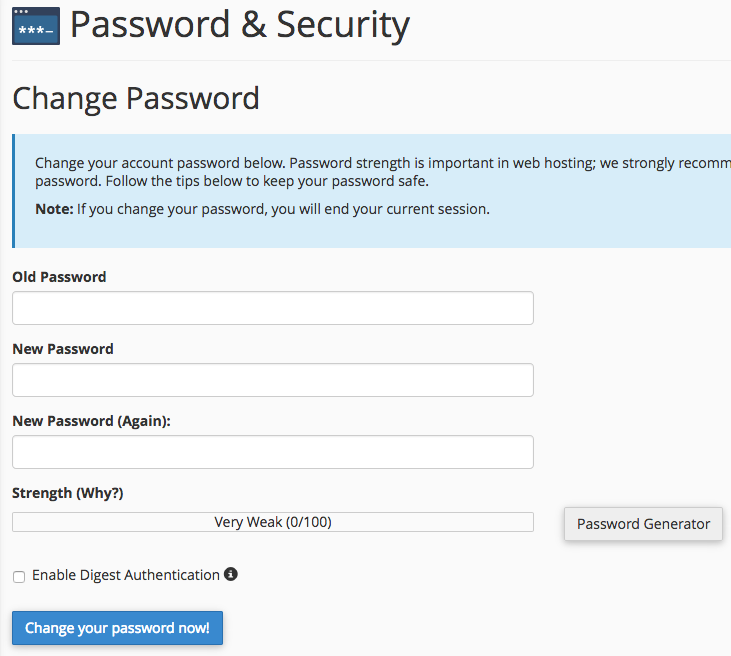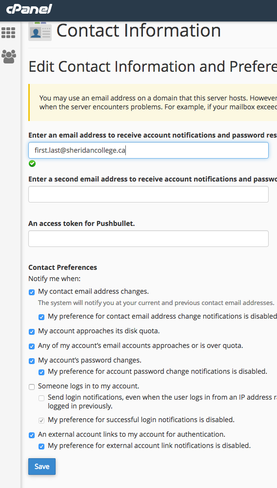 You will need to set your email address both in CPanel and WordPress so that password resets and quota warnings will reach you. This guide will assist you with that task. Note you will have a separate login and password for WordPress, please be aware of which account is being used in each step.