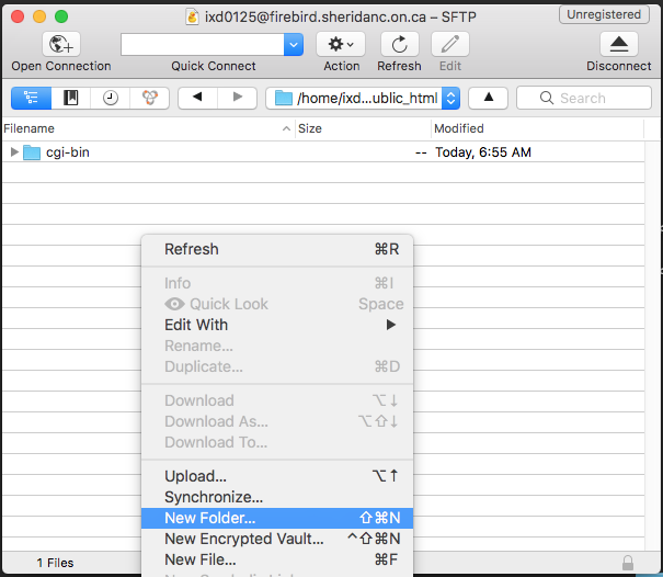 You will have received an email from ixd_support@sheridancollege.ca with a login and password to the server firebird.sheridanc.on.ca